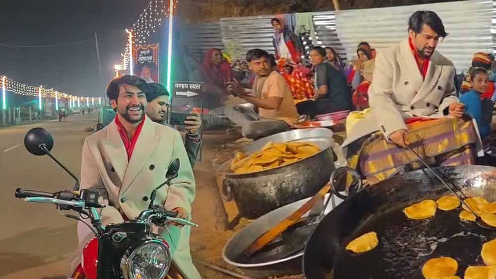 रात 3:30 बजे बागेश्वर महाराज ने अन्नपूर्णा मंडप में खुद संभाली भट्टी, प्रसादी की पूरियां तैयार