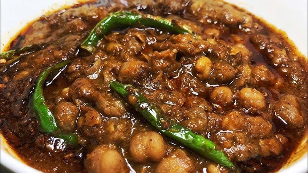 ढाबा-स्टाइल, चटपटे और स्वादिष्ट मसालेदार छोले तैयार हैं।