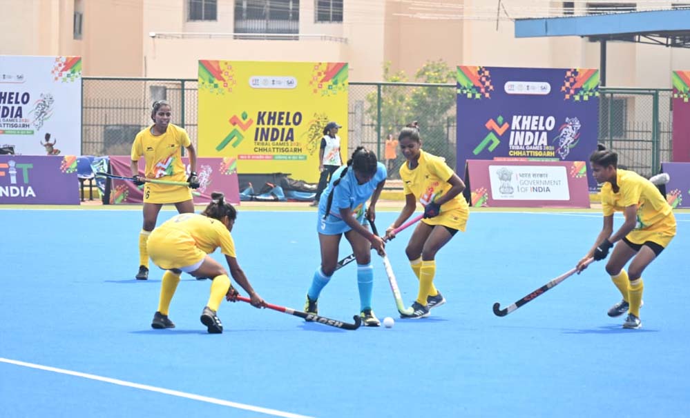 खेलो इंडिया ट्राइबल गेम्स के अंतर्गत राजधानी रायपुर स्थित सरदार वल्लभभाई पटेल इंटरनेशनल हॉकी स्टेडियम में आज तीसरे दिन महिला हॉकी प्रतियोगिता के मुकाबले खेले गए। पूल ‘ए’ में खेले गए मैच में मध्य प्रदेश ने बिहार को 9-0 से पराजित किया। वहीं, पूल ‘बी’ के मुकाबलों में झारखंड ने गुजरात को 16-0 से और ओडिशा ने तमिलनाडु को 14-0 से हराया। आज खेले गए सभी मैच एकतरफा रहे, जिनमें विजेता टीमों ने पूरे समय खेल पर अपना दबदबा बनाए रखा।