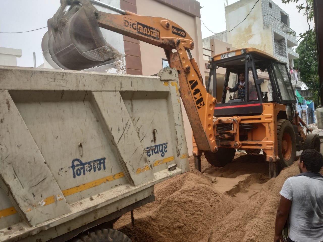 रायपुर। नगर निगम रायपुर के आयुक्त सौरभ कुमार के आदेशानुसार नगर निगम जोन 5 नगर निवेष विभाग की टीम ने जोन 5 जोन कमिश्रर संतोष पाण्डेय के नेतृत्व व जोन नगर निवेष उपअभियंता सैय्यद जोहेब की उपस्थिति में जोन के तहत आने वाले रायपुरा सत्यम विहार गली नंबर 4 में निर्माणाधीन भवन के भवन स्वामी द्वारा गली में रेत डालकर गली का आवागमन बाधित किये जाने की जनशिकायत निरीक्षण में सही मिलने पर स्थल में तत्काल थ्रीडी व डम्पर की सहायता से लगभग 1 डम्पर रेत गली से हटवायी एवं गली की यातायात व्यवस्था बहाल की। साथ ही संबंधित भवन स्वामी पर सड़क बाधा शुल्क के रूप में 5000 रू. का जुर्माना वसूला एवं उन्हें भविष्य के लिये कडी चेतावनी दी और जोन स्तर पर प्राप्त जनशिकायत का त्वरित निदान किया।