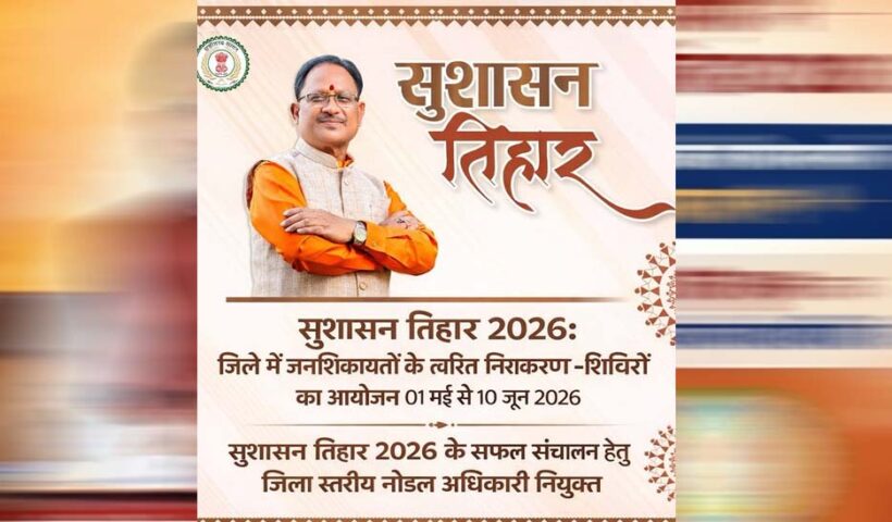 अम्बिकापुर : सुशासन तिहार 2026: जिले में जनशिकायतों के त्वरित निराकरण हेतु शिविरों का आयोजन 01 मई से 10 जून 2026 सुशासन तिहार 2026 के…