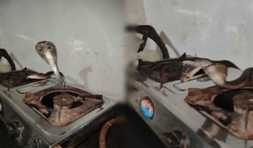 छत्तीसगढ़-कोबरा में किचन में फन फैलाए बैठा था 5 फीट लंबा किंग कोबरा, चाय बनाने पहुंची महिला के उड़े होश