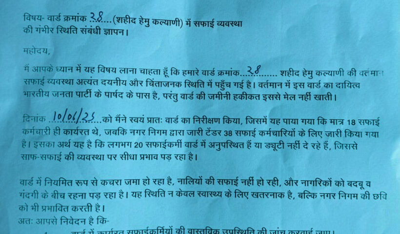 View More सफाई व्यवस्था चरमराई ,युवक कांग्रेस ने सौपा ज्ञापन….संविदा सेवा की बाध्यता से अनेक प्रतिभाशाली डॉक्टर पीजी के लिए दूसरे राज्यों का रुख करने को मजबूर